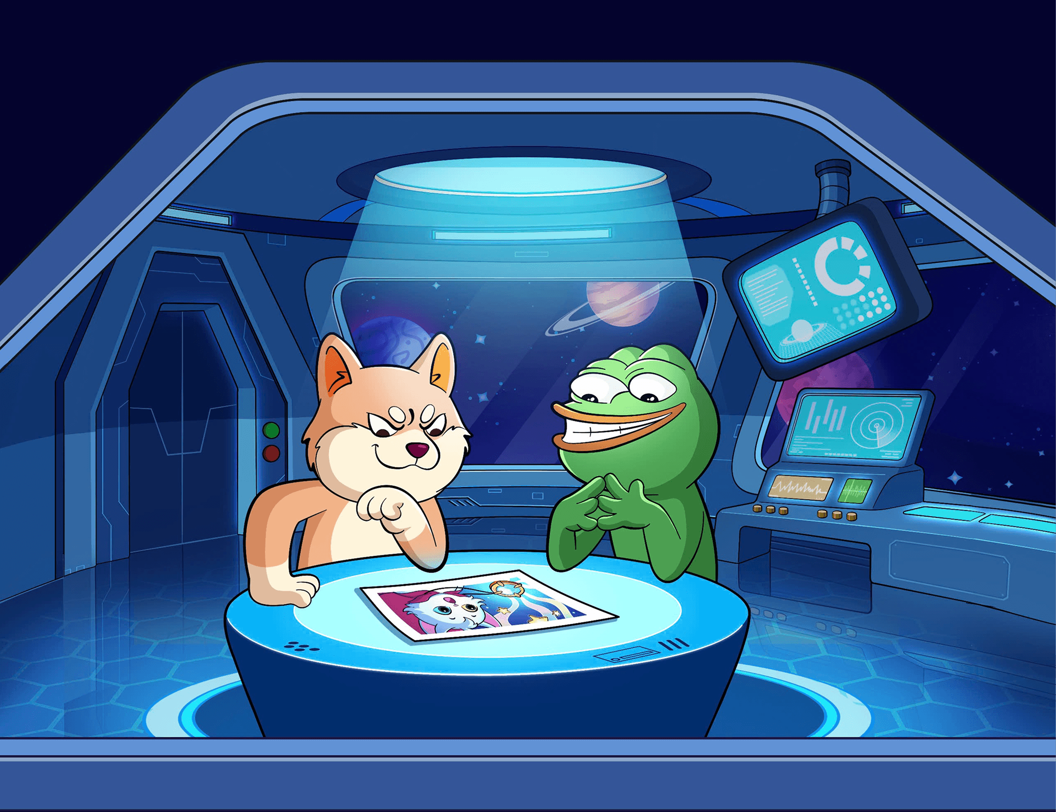 In a secret room somewhere in the memespace, Pepe and Shiba are cooking up a plan to steal the magical amulet and take